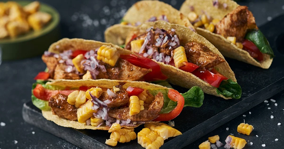 Clássicos: al pastor – carne de porco marinada em abacaxi e adobo, grelhada na grelha vertical; carnitas – carne de porco assada na própria gordura; barbacoa – carne bovina ou de cordeiro assada lentamente na churrasqueira; pescado – peixe frito com salada de repolho; baja – camarão empanado. Mas também há opções veganas: cogumelos, cacto (nopal), feijão preto.